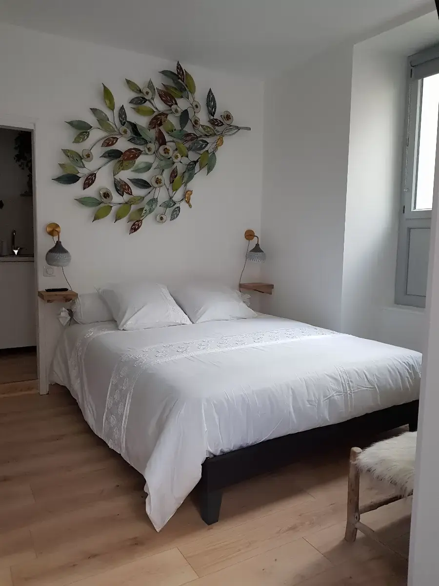 Studio avec lit King size 160X200 matelas mémoire de forme, salle de bain, WC, kitchenette, petit déjeuner servi en chambre.