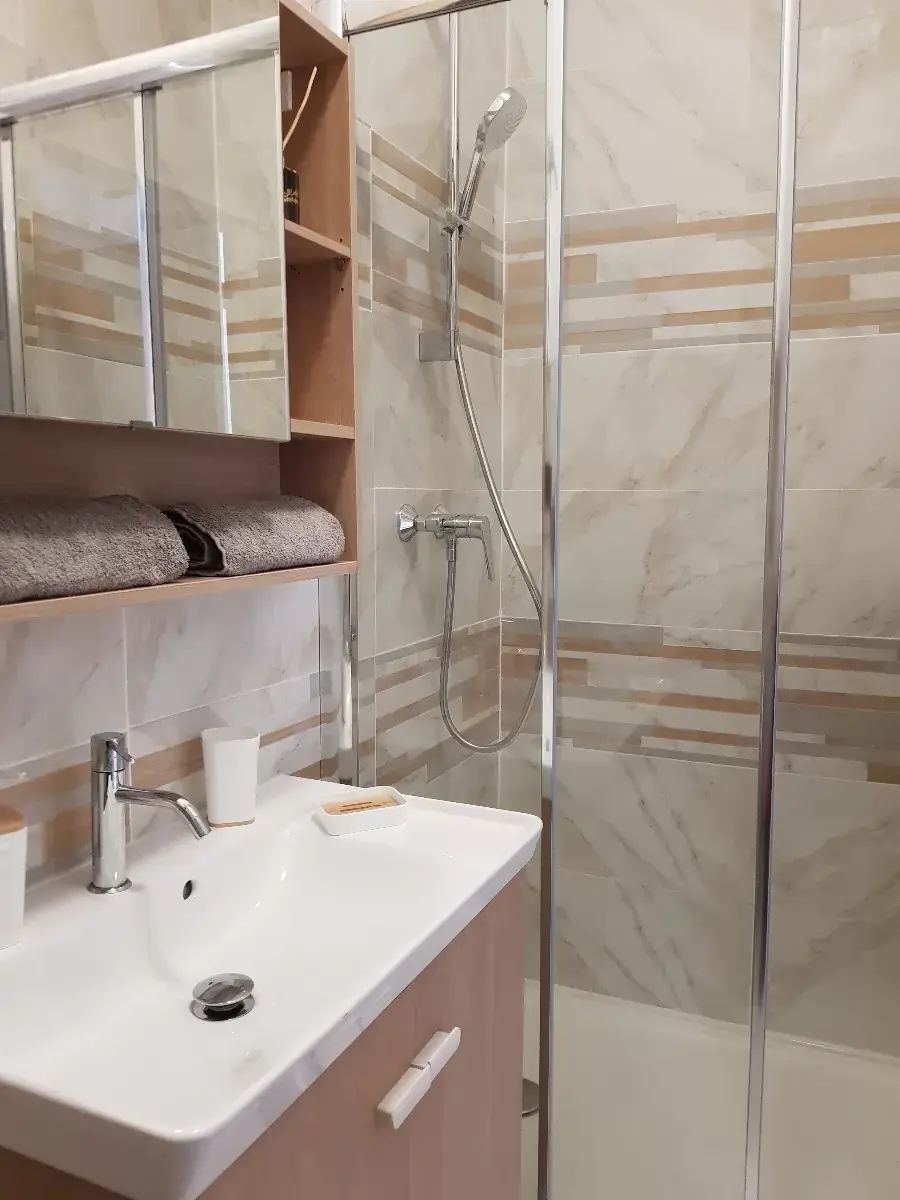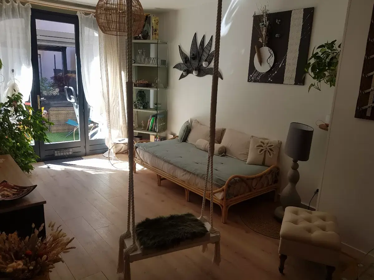 T2 avec suite parentale lit King size 160X200 et un lit au niveau du salon de 90X200 matelas mémoire de forme, salle de bain, WC, cuisine, petit déjeuner servi en chambre