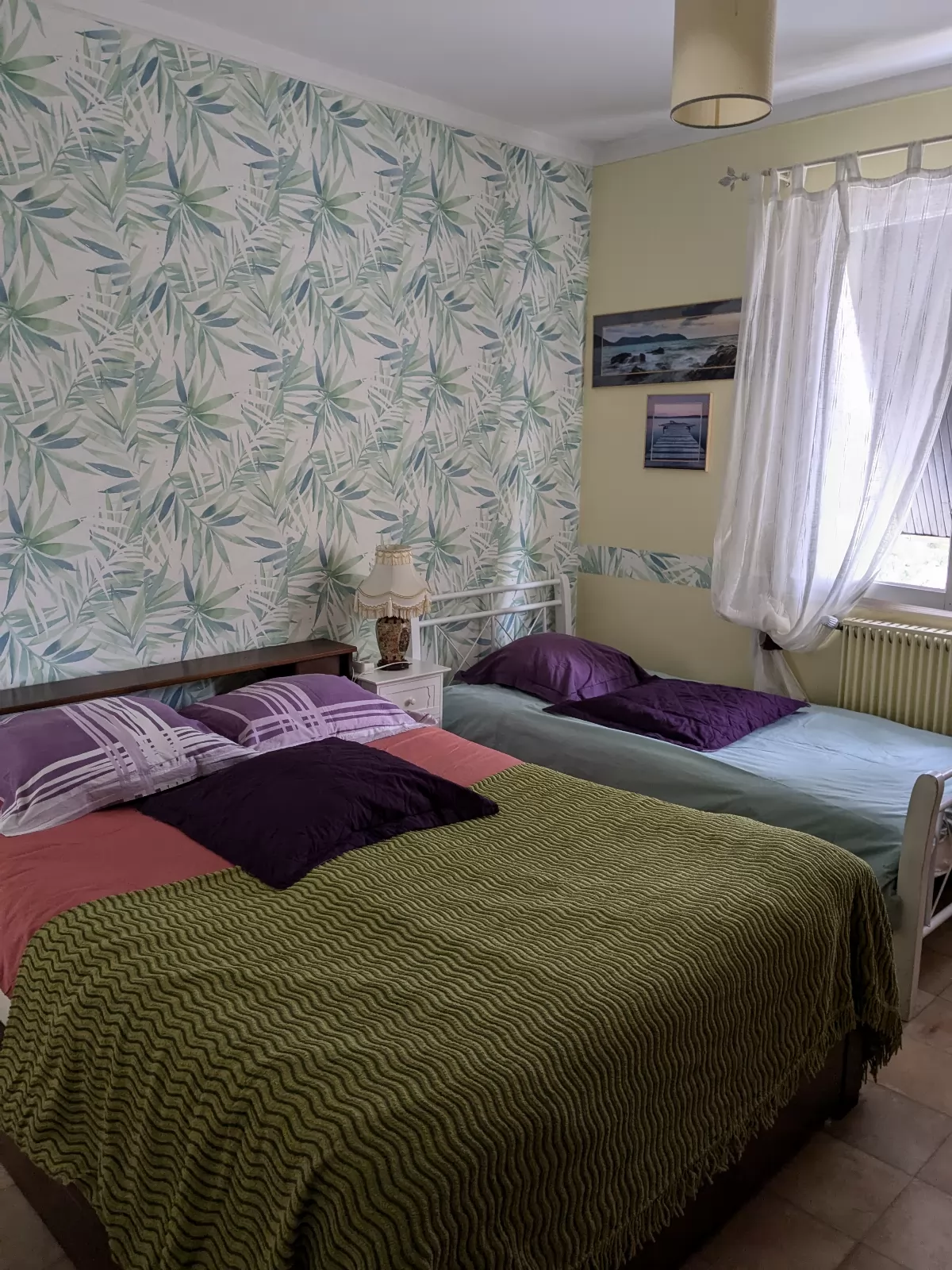 3 chambres de 3 places chacunes.1 avec 3 lits simples et 2 avec un lit double et un lit simple. |