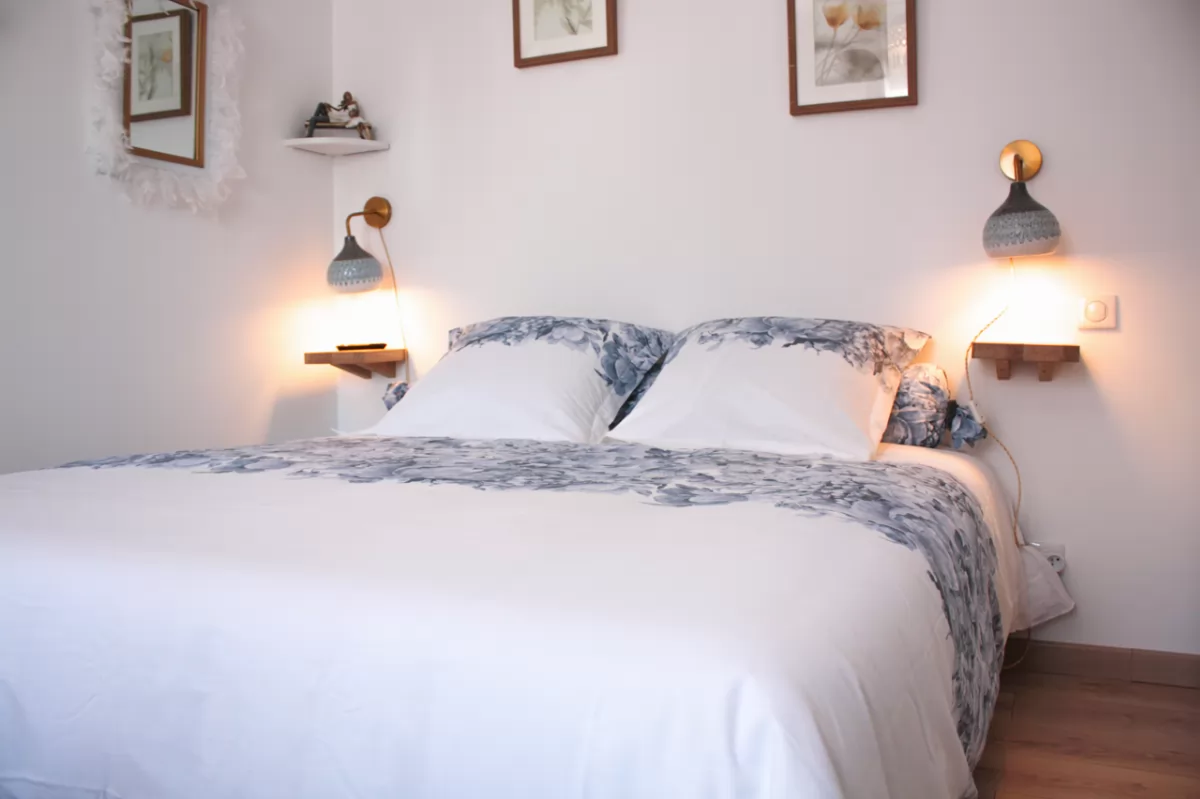 T2 avec suite parentale lit King size 160X200 et un lit au niveau du salon de 90X200 matelas mémoire de forme, salle de bain, WC, cuisine, petit déjeuner servi en chambre