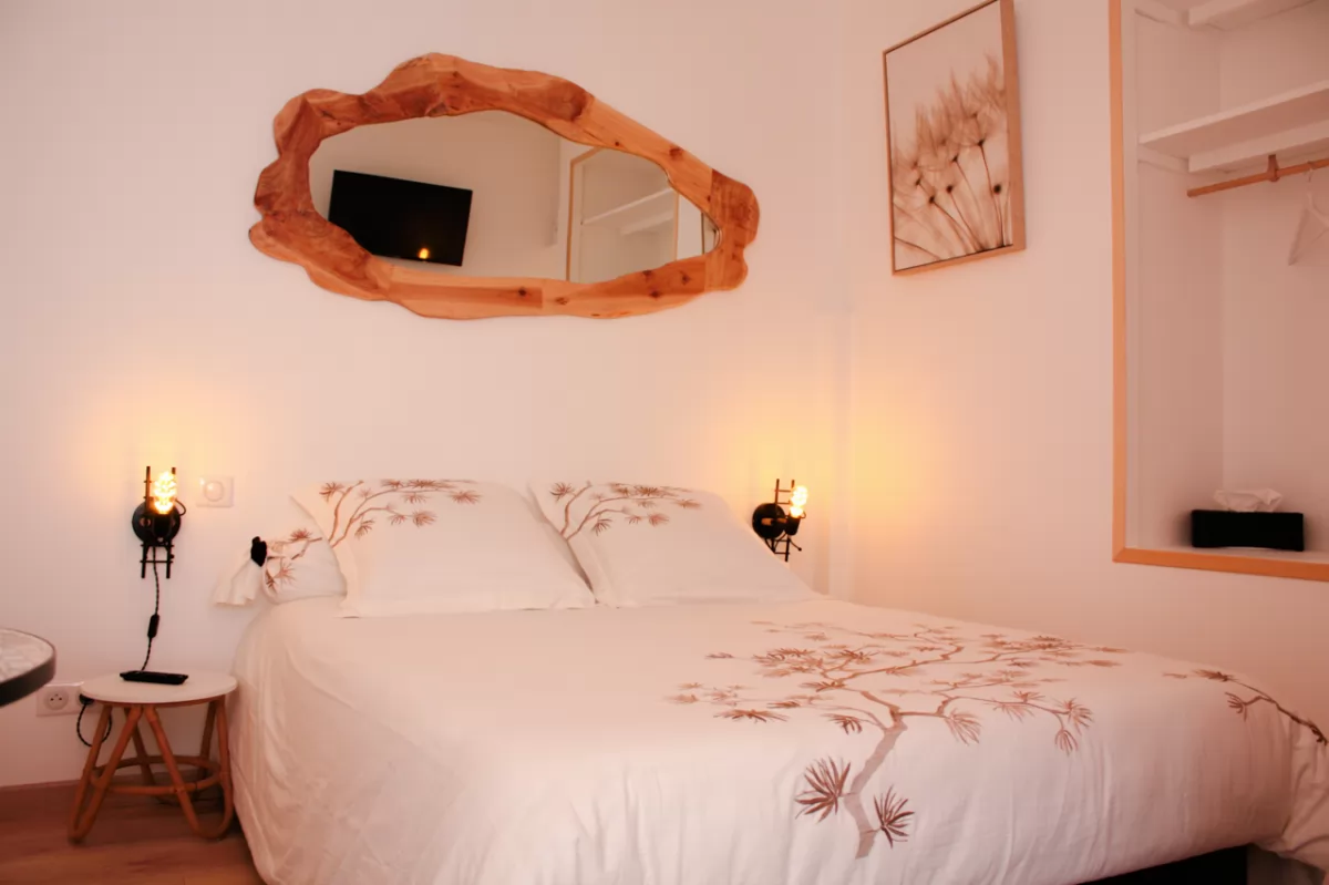 Studio avec lit King size 160X200 matelas mémoire de forme, salle de bain, WC, kitchenette, petit déjeuner servi en chambre.